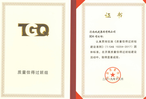 集團(tuán)804項(xiàng)目部榮獲中國質(zhì)量協(xié)會“質(zhì)量信得過班組”