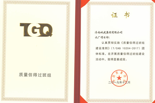 集團(tuán)水廠項(xiàng)目部榮獲中國質(zhì)量協(xié)會“質(zhì)量信得過班組”