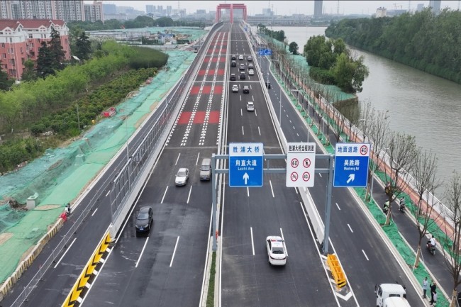 該工程于2023年11月正式啟動建設,北起新勝路交叉口北側,向南以跨線橋銜接現狀勝浦大橋主橋,工程全長約1公里,高架主線段長605米,橋寬25.5米,采用雙向六車道設計,并配備四條匝道,設計車速達60千米/小時。勝浦大橋是連接工業(yè)園區(qū)和吳中區(qū)的重要通道,將有效提升區(qū)域交通通行能力。