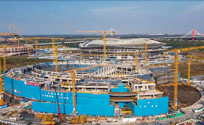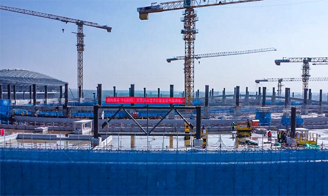 目前,項目總體進展順利,主體結(jié)構(gòu)均已按計劃節(jié)點完成,在今年6月實現(xiàn)了全面封頂。項目正進行室內(nèi)的二次結(jié)構(gòu)砌筑,穿插機電專業(yè)的管線預(yù)埋工作。并推進鋼結(jié)構(gòu)屋蓋的吊裝,計劃元旦前完成全部外圍鋼結(jié)構(gòu)屋蓋的吊裝工作。