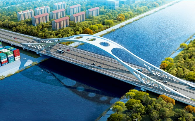 濟南市二環(huán)東路工程南起燕山立交,北至零點立交,全長 9.5 公里,總投資 22 億元,包括高架橋、地面道路及 BRT 快速公交系統(tǒng),是濟南市“三縱三橫”快速路系統(tǒng)的重要一縱,是高架橋和地面快速公交融為一體的雙快體系道路,榮獲中國市政金杯示范工程。